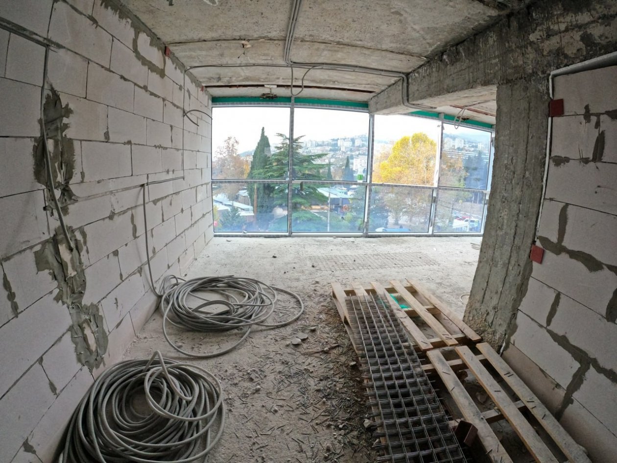 Уже заканчивают устанавливать витражные оконные блоки. Специалисты усилили несущие конструкции, это заняло почти семь месяцев. Планируется, что современный объект будет готов к началу курортного сезона.