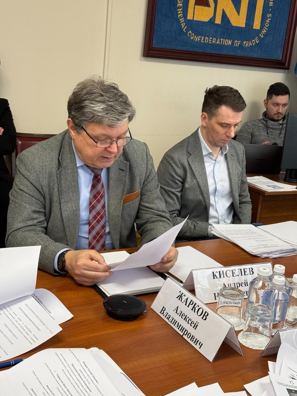 Секретарь Федерации независимых профсоюзов России по международному сотрудничеству, председатель Комиссии ВКП по вопросам профсоюзного строительства и международного сотрудничества Алексей Жарков выступил ведущим заседания комиссии.