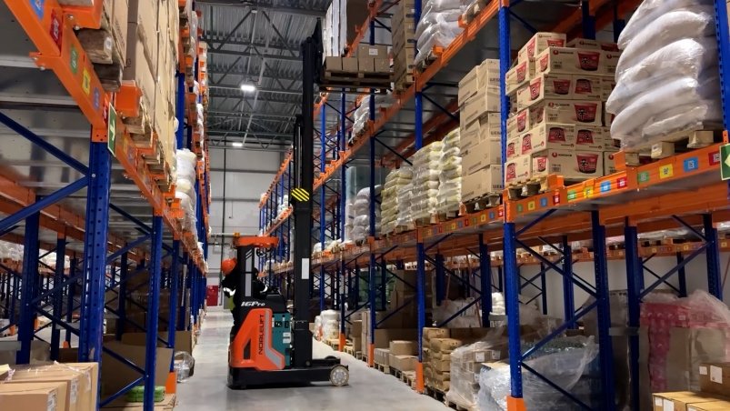 Овощехранилище вместимостью 1000 тонн позволяет хранить урожай более девяти месяцев. Для фруктов и овощей оборудованы специальные камеры с регулируемой газовой средой — уникальная для региона технология. Зона сухого складирования, охлаждённая зона и зона глубокой заморозки оснащены современной техникой, включая самоходные тележки на радиоуправлении, которые перемещают паллеты по заданным маршрутам. Общая вместимость склада — 7800 паллетомест, из которых занято 6938.
