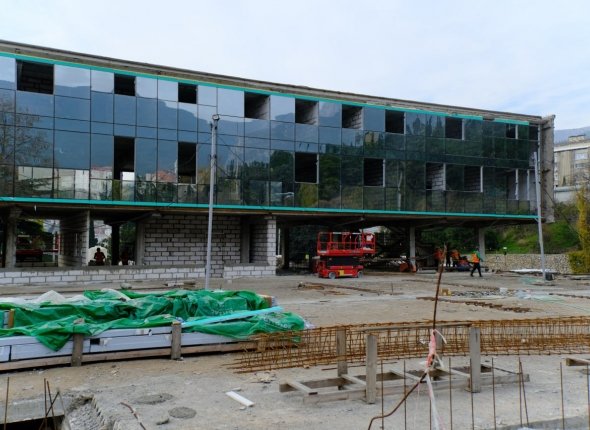 Уже заканчивают устанавливать витражные оконные блоки. Специалисты усилили несущие конструкции, это заняло почти семь месяцев. Планируется, что современный объект будет готов к началу курортного сезона.